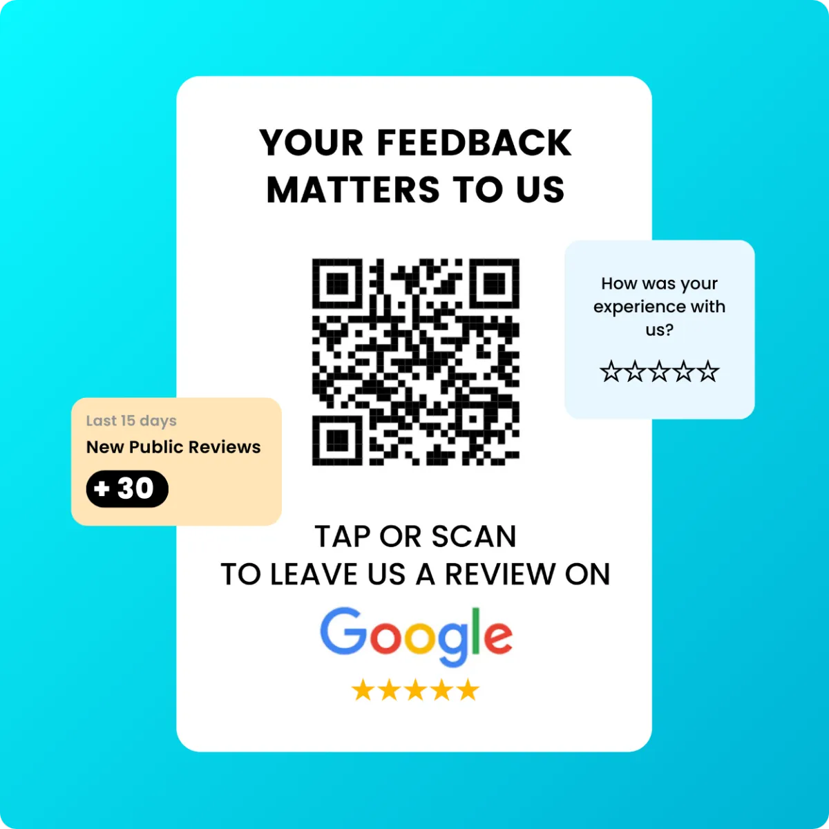This makes it easy for your customers to leave a review by simply scanning the QR code, and helps you build your online reputation quickly and easily.
