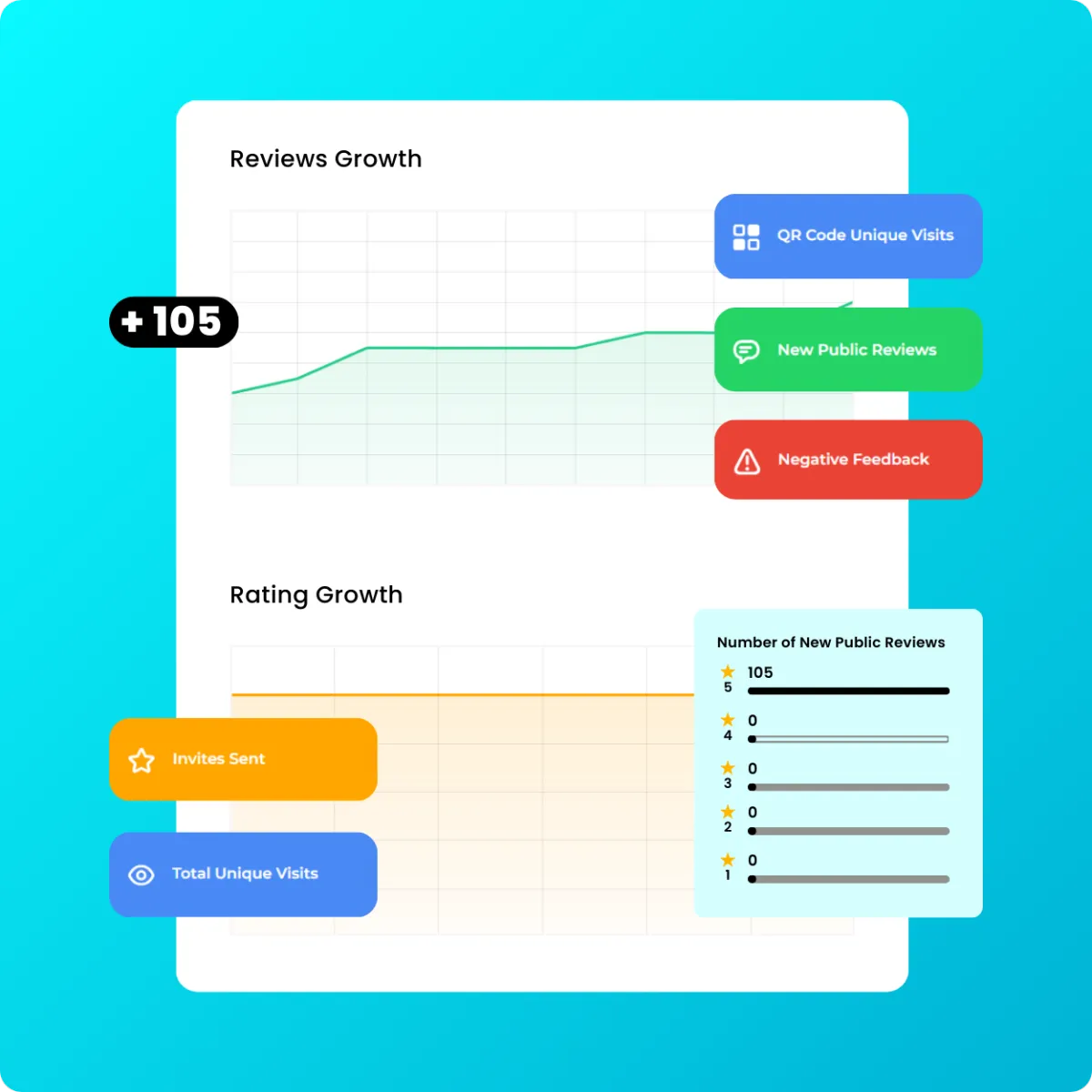 Showcase your positive reviews and testimonials to your website and social media accounts, boosting trust and credibility for your business.